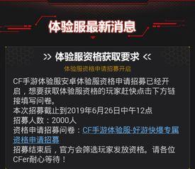 最近有没有听说《穿越火线》的体验服又要开放申请啦?这可是不少玩家翘首以盼的消息呢!这不,小编我就迫不及待地来给你爆料一下最新的申请情况,让你提前了解一下这场游戏盛宴的盛况!